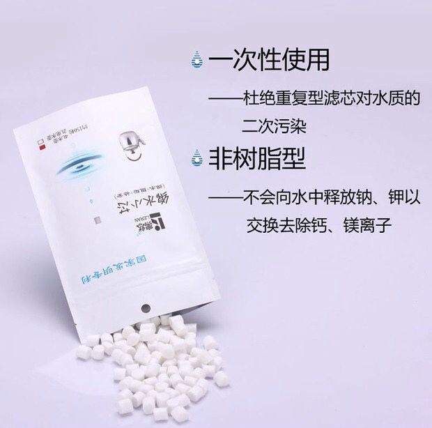 杜绝重复 型滤芯对水质的二次污染,非树脂型不会向水中释放钠、钾以交换去除钙、镁离子